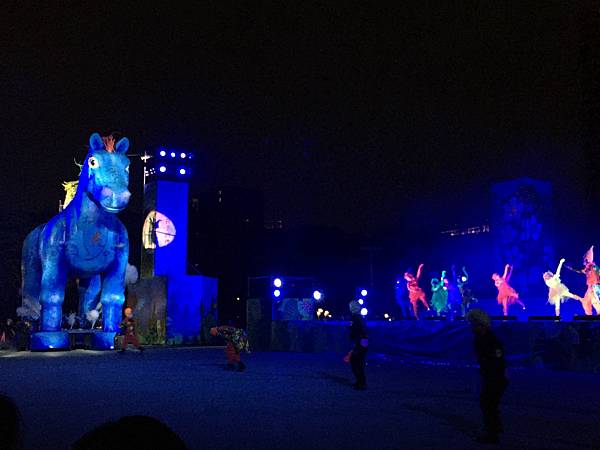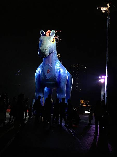 近4層樓高的雨馬看起來真的巨大,除了大雨馬,還有兩隻可愛的小馬,跳起舞來很可愛。