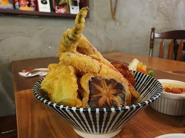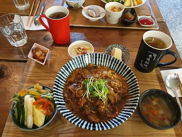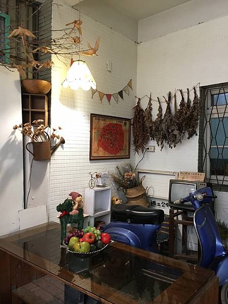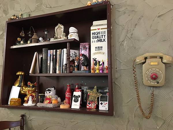 午餐預計要去吃的店,因為錯過了最後點餐時間,只好捨棄,另尋新崛江附近的一家老屋改造的店「來吃飯飯」,店名簡單卻也很直覺。餐廳內擺放了很多老闆的收藏品,也保留了老屋的痕跡,有很強烈的風格感。