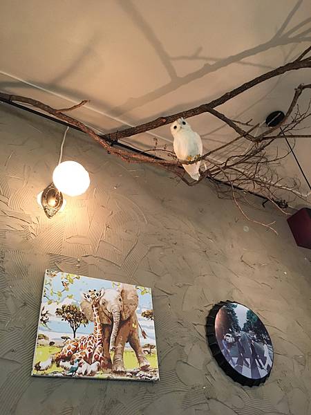▲牆面粉刷的痕跡,樹上的鳥與牆壁掛飾。