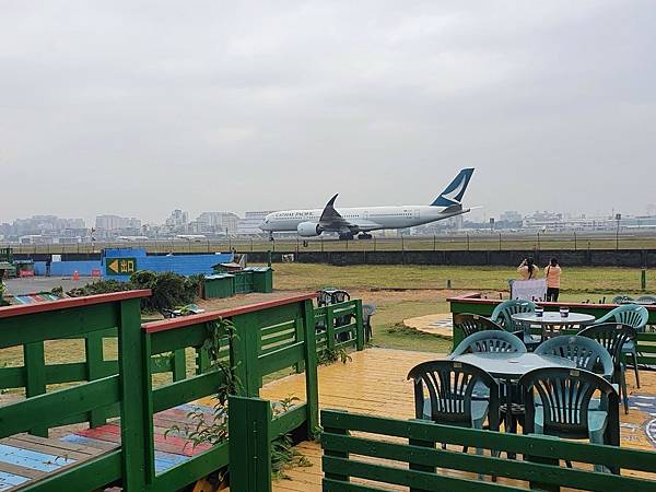 無法出國,那看飛機總可以吧!於是來到「老爸機場咖啡」,每人低消70元就可以了。幸運看到一台國泰飛香港的A350,還有幾台飛離島的小飛機。