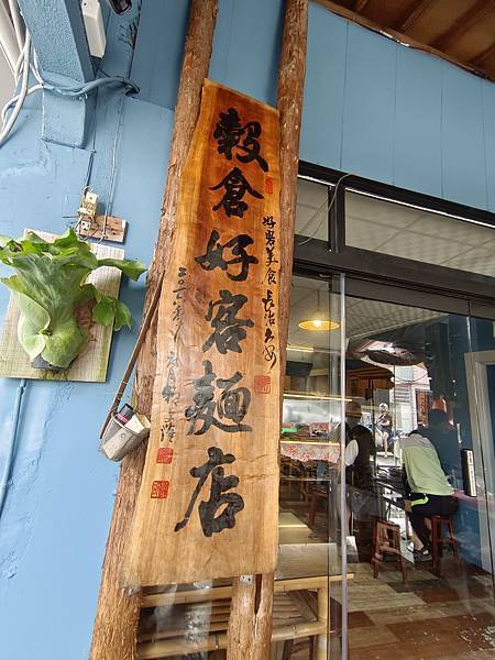 中午來到也是觀光客美食採點的「穀倉好客麵店」,據說這間麵店原本生意就不錯,後來因為藝人Ella去(2021)年連續來吃7天更出名了,可想而知假日必有排隊人潮,我們這一排就是50分鐘,真是佩服自己。