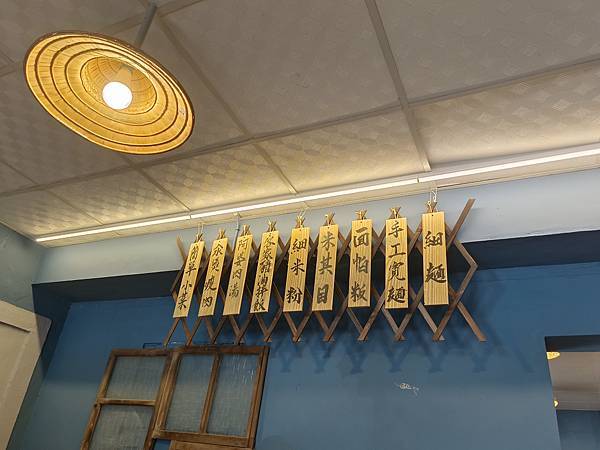 ▲牆上掛著販售品項,燈飾是用斗笠,有發現嗎?