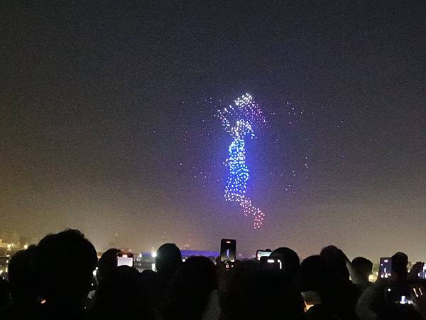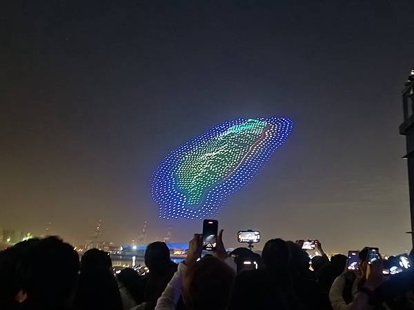 雖然早就在網路上看過無人機表演影片,但是,不得不說,現場看真的超震撼,1500台無人機排出的圖案非常有立體感,會讓人驚呼不已,雖然還是用手機拍下幾張照片,但強烈建議還是用眼睛看,將最美的影像留在心中。