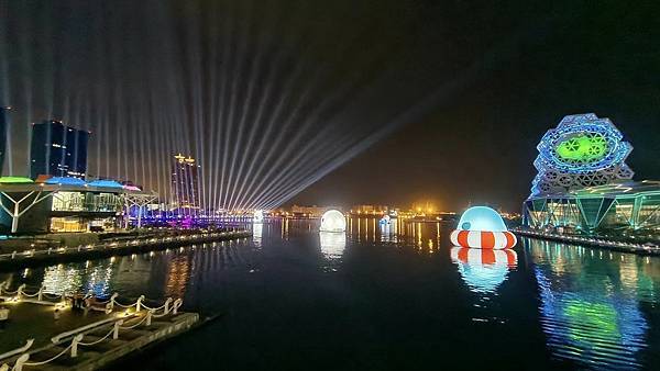 今晚愛河灣多了雷射光束,整個港灣多了一個動感。