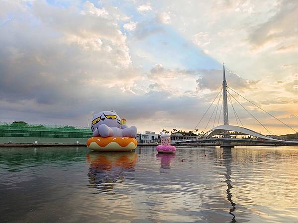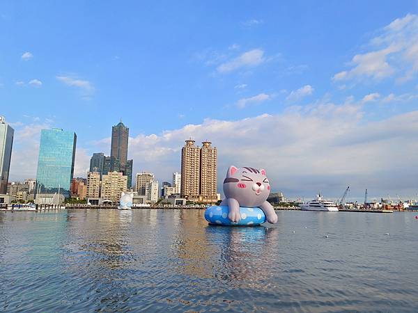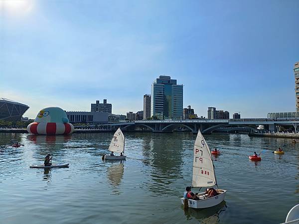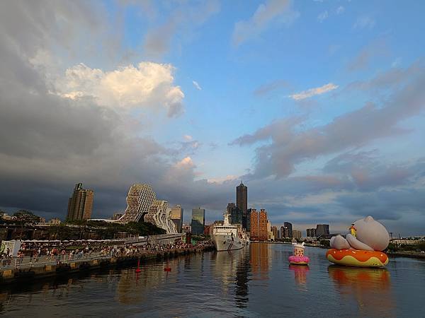 高雄為了迎接台灣文博會與台灣設計展,推出聊療漂漂河計畫,將Line貼圖巨大化、實體化,化身為愛河灣的六個超萌明星,最近有著超高人氣,讓高雄假日滿滿的都是人。與好久不見的同學們約會,除了吃飯聊天,當然也來朝聖跟風一下,剛好這兩天遇到文博會與海洋派對,相當熱鬧,港灣多了水域活動,頗有國外風情。