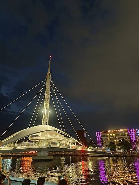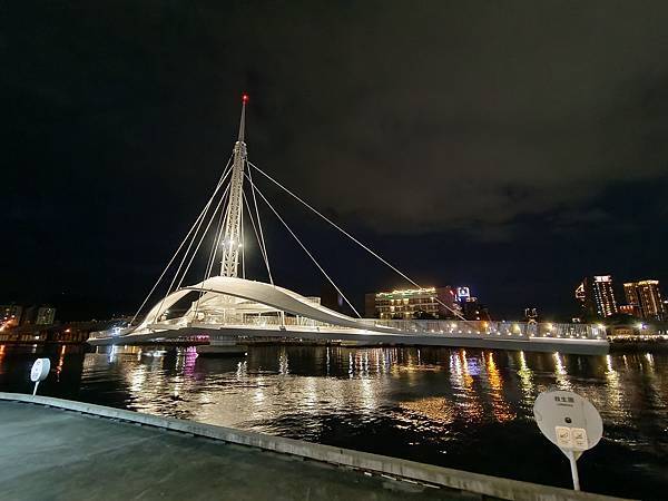 欲往回走的時候,剛好遇到晚上7點大港橋旋轉時間,就坐在港邊欣賞轉橋秀,橋只轉了一半,而且這一等就是半小時。