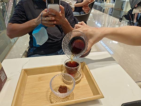 朋友喝的是哥倫比亞手沖咖啡,會附上研磨的咖啡粉讓客人聞聞咖啡香氣。