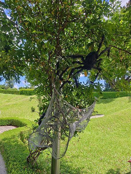 園區內有一些萬聖節裝飾,如南瓜、蜘蛛、骷顱頭等。