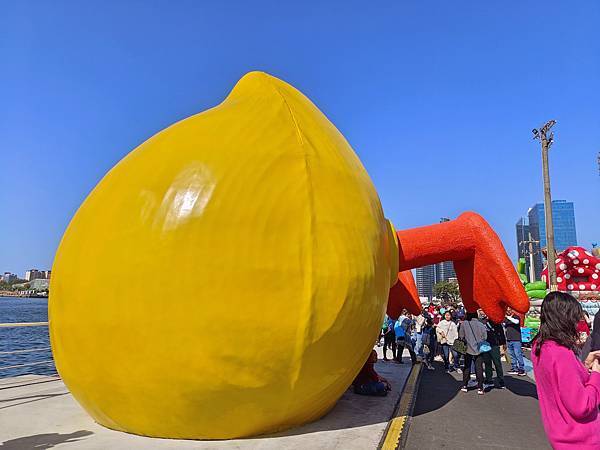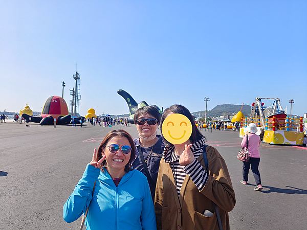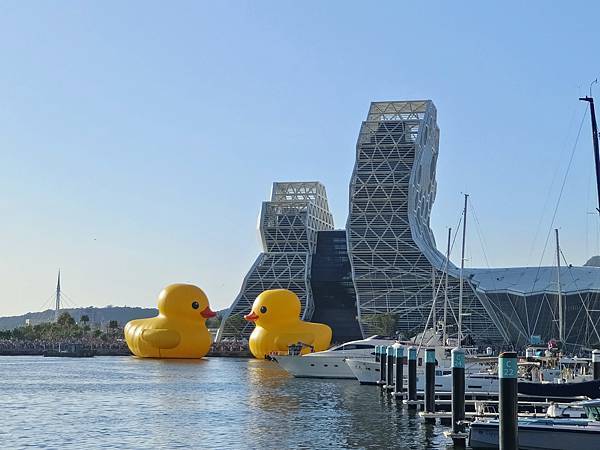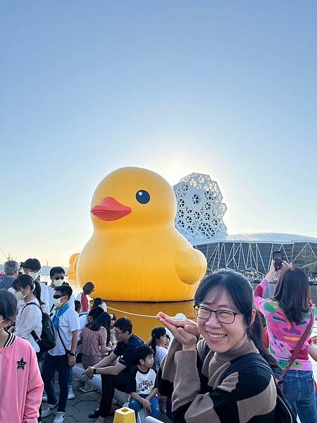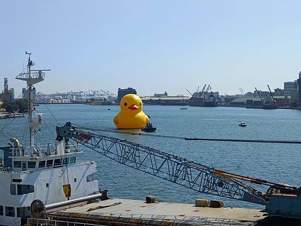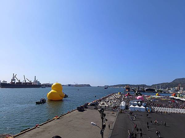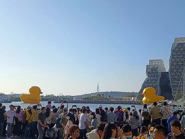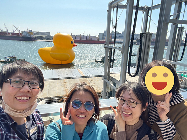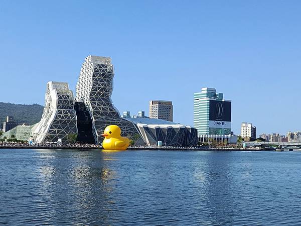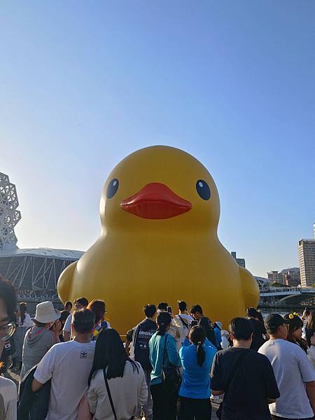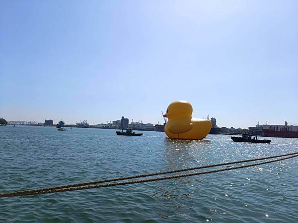 吃飽喝足後,前往高雄港旅運中心,小鴨剛好開始出發遊港,於是就開始和鴨鴨(與牠的屁股)合照。今天的天氣很棒,萬里無雲,熱翻了🌞