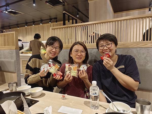 配菜自己在自助吧夾取,飯後還有冰淇淋可享用,飲料喝了點烏梅汁,覺得很清淡。席間閒聊了大夥兒的近況,也收到bnbn從北海道帶回來的伴手禮😋