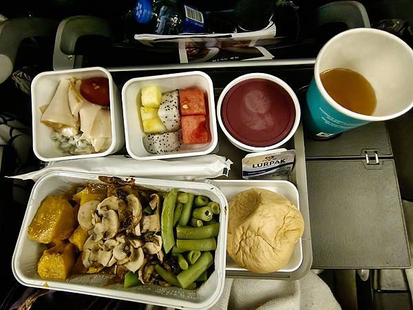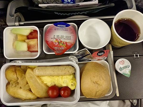 經過約14幾個小時的飛行,飛機一早到達巴黎戴高樂機場,長途旅行搭飛機是挺累的一件事,因為晚上其實都會睡不好。飛機約凌晨12點起飛後,會供餐喔!!當空服員將餐點送來的時候,特意看了一下時間,凌晨2:30!!哈囉~請問這是宵夜還是晚餐?總之,想讓自己儘量多睡點,但餐點還是有吃!菜單上看見蛋塔,想說有機會吃個蛋塔也不錯,只可惜最後也沒有跟空服員要,心裡只想著趕快睡覺、趕快到達吧!