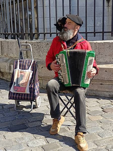 ▲聖心堂外面的街頭藝人在演奏的時候,他的寵物貓舔著主人的鬍子,感情真好。(影片請看這裡)