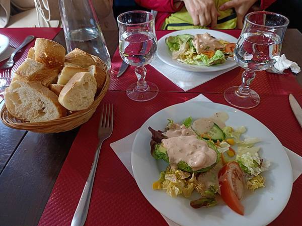 隨後來到Le Péché Mignon這間餐廳吃油封鴨,開始了每一餐都會有法國麵包的日子。店內空間狹小,但還是擠了兩個旅行團(所以專門做旅行團生意?),但員工人手好像不太夠。