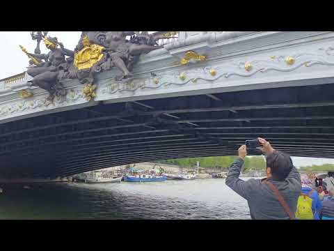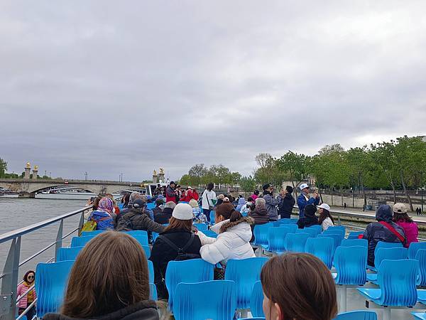 天氣也冷,在凱旋門附近拍完照,趕緊上車取暖,準備來去塞納河遊船。瀏覽塞納河兩岸的景色、景點十分愜意,但冷風颼颼,四月天法國還是冷呀!