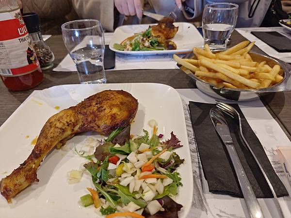 結束運河遊船,來到搭船處旁的Café-Restaurant Smit餐廳品嚐鄉村烤雞,搭配每餐必有的薯條,今天的甜點是蘋果派。