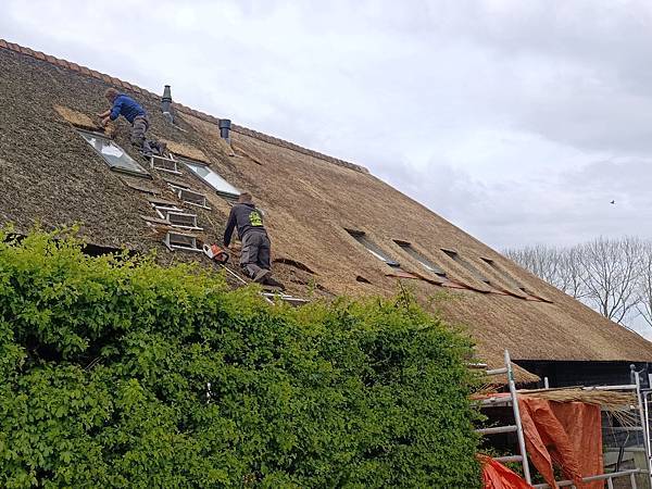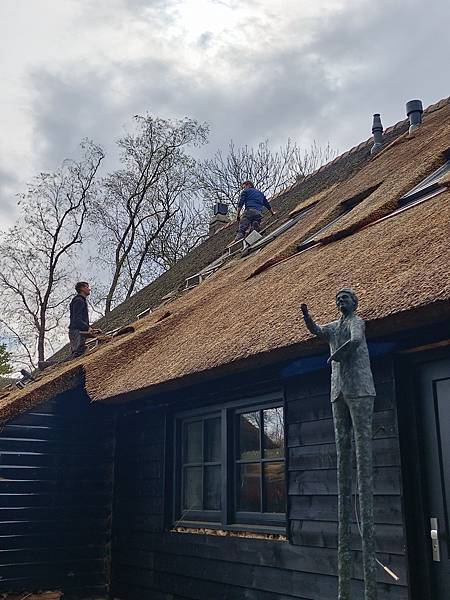 羊角村(Giethoorn)是到荷蘭必去的景點之一,一進入羊角村,就看到有人在整修更換屋頂的蘆葦。