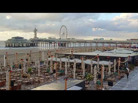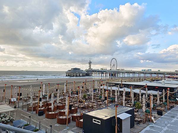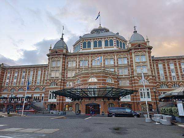 4/21晚上住在海邊、歷史悠久的Grand Hotel Amrath Kurhaus飯店, 入住之後走到海灘吹海風、看海景,這裡夏季一定是個度假勝地,但現在真的好冷。