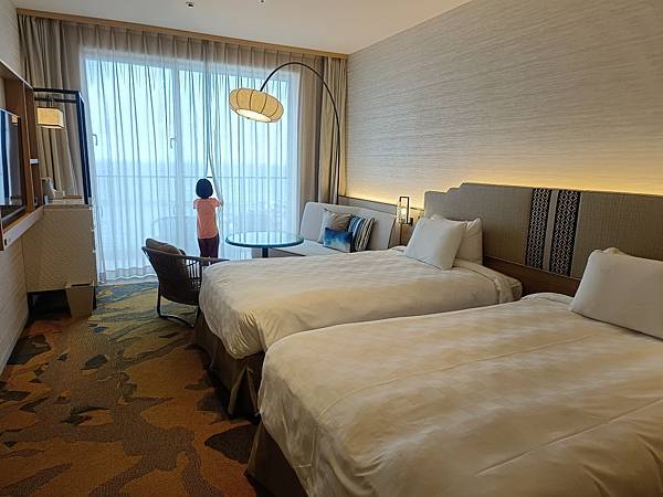 填飽肚子後,搭乘租車公司的接駁車,到租車處完成租車程序,租了一台足以容納我們4大2小的車子,開始了以小孩為主題的親子旅行。這次連續3晚住宿弟弟一家人上次住過的沖繩王子飯店,飯店全部的房間都是海景房,早餐也可以吃到沖繩在地食物,房間算寬敞,還有小陽台可以坐著看無敵海景,很讚!