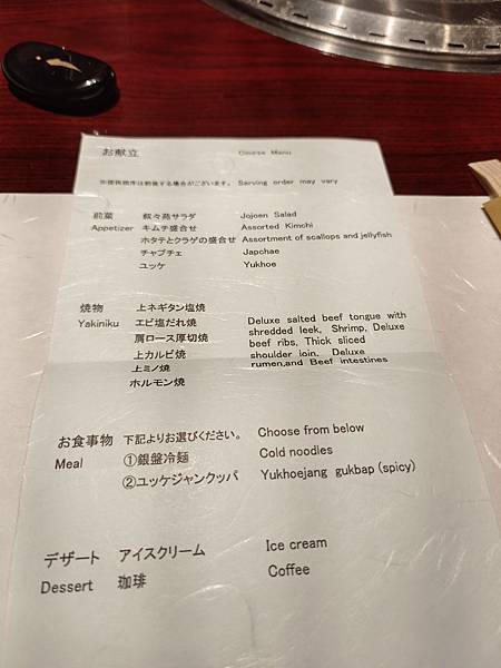 這次吃的最貴的一餐就是敘敘苑燒肉了,網路上很多人推CP值較高的商業午餐套餐,但午餐我們的時間無法配合,所以就排入晚餐行程,還坐在包廂呢(費用當然有比較高一些)。點了「月之宴」套餐,結論就是:食材高級,服務很好,這一餐也吃得很飽,到日本必吃的敘敘苑算是採點成功,但可能僅只一次(荷包已空),品嚐過就好。
