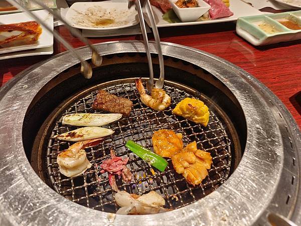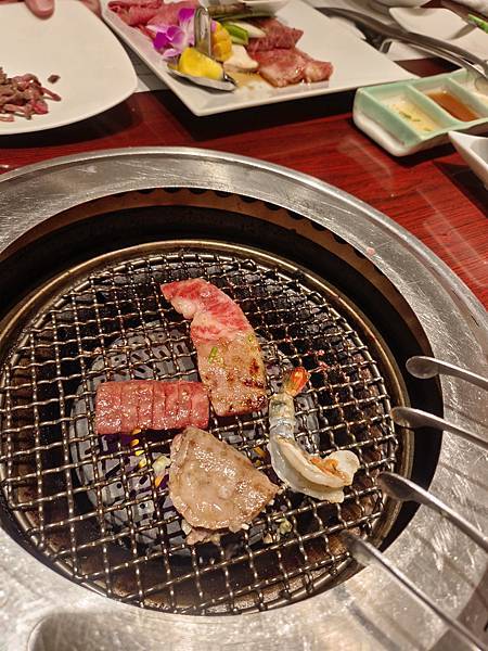 ▲這盤有上等佐蔥鹽牛舌、鹽醬蝦、牛肩脊肉、上等五花肉、牛胃、牛腸