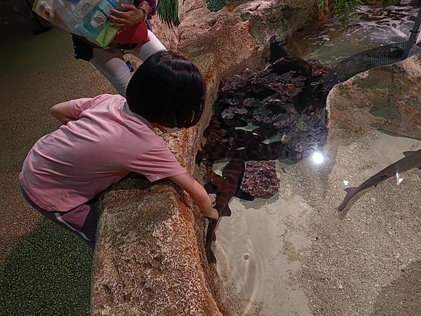 本日行程重點是孩子們最期待的水族館,不用跑到北部的沖繩美麗海水族館,這間DMM Kariyushi水族館距離機場近,且在iias沖繩豐崎購物中心裡面,交通和飲食都很方便,又可以購物。水族館還有動物餵食體驗(另外購票),非常受到小朋友的喜愛。小姪女這次餵食了樹懶、水獺和企鵝,還可以給魚咬手、摸小鯊魚、海星等,玩得不亦樂乎。午餐就在商場裡簡單解決。