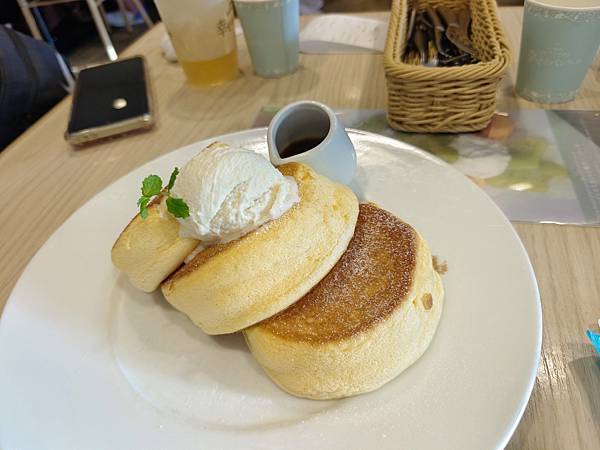 隨後前往海天一色的瀨長島,可以看到飛機起降,非常適合放空,不過天氣有點熱、太陽有點大,還是先到室內休息比較實在。首先踏入甜點店-美らイチゴウミカジテラス店(Chura Ichigo Umikaji Terrace分店),Chura Ichigo是沖繩最大的草莓園,這間店自然是以草莓為主打商品,點了消暑的草莓雪花冰、草莓飲品等,然後再到瀨長島上的必吃名店幸福鬆餅(幸せのパンケーキ),排隊人潮不少,要稍微等候才有內用座位。鬆餅好吃,我覺得搭配無敵海景才是讓鬆餅更美味的關鍵。