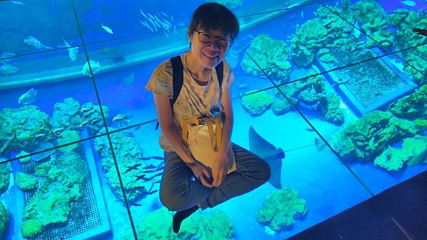 ▲這裡好好玩,可以站或坐,看著底下的海洋生物。