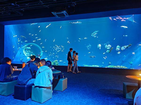 ▲這一區有桌椅,可以一邊吃著餐點,一邊欣賞面前的大水族箱。