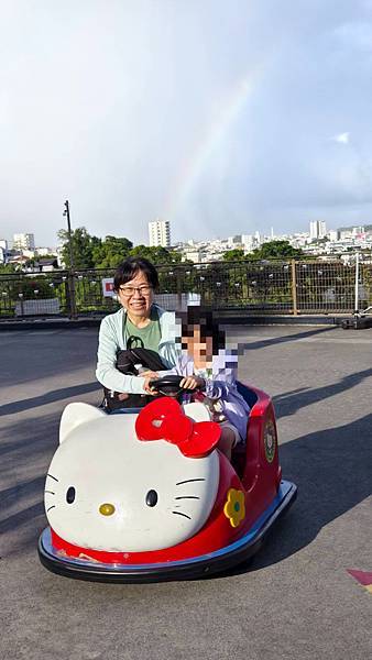 ▲在沖繩兒童王國開小車,小孩玩得超開心。這張照片的重點是後面有彩虹,沖繩的天氣時常是偶爾飄來一片烏雲,下點雨之後又放晴了。