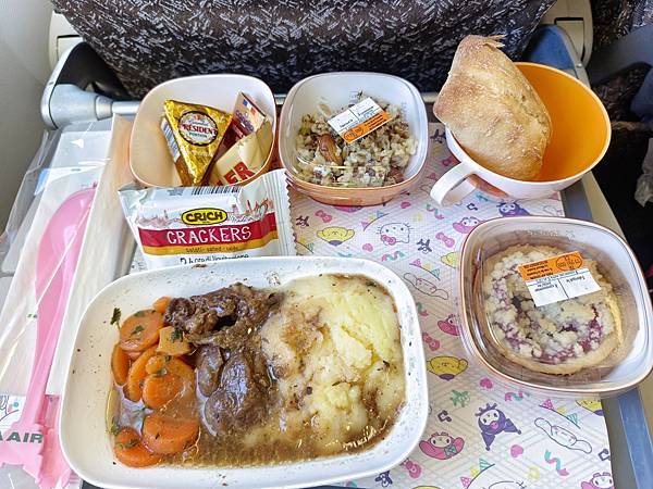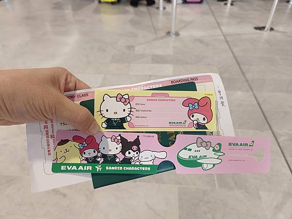 很幸運地,回程一樣是搭長榮航空與日本三麗鷗聯手打造吸睛的彩繪班機,第一天搭機的時候是晚上,無法很清楚的拍到彩繪機,現在總算能按看得很清楚了。Check in的時候還可以拿行李吊牌,雖然我也沒有使用就是了,單純紀念一下。