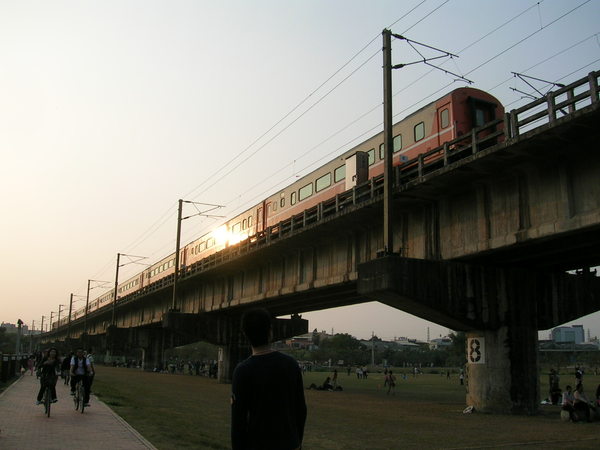 好多人在放風箏,偶爾還可以見到火車經過,還真是一個傍晚休閒的好地方。